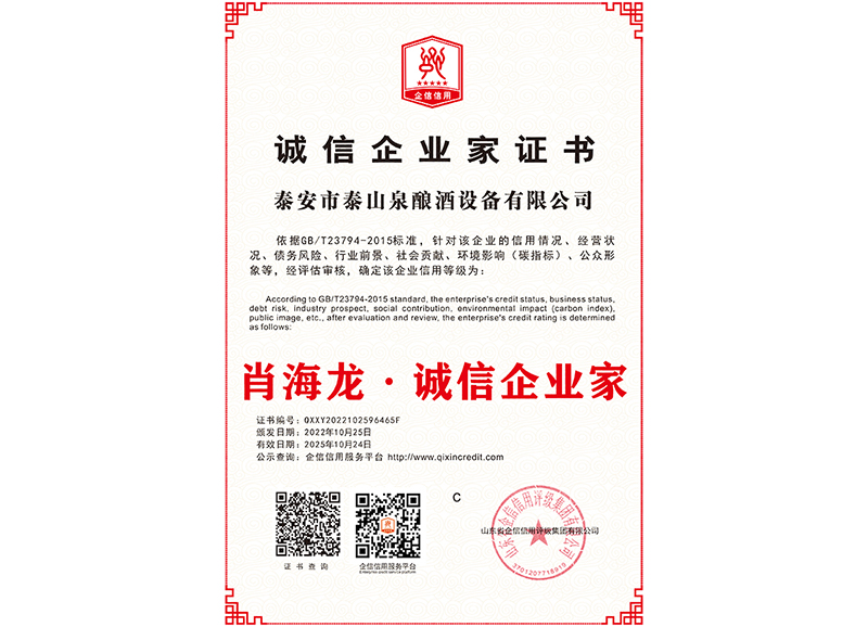 泰安市泰山泉釀酒設(shè)備有限公司,是一家專業(yè)從事釀酒設(shè)備機(jī)械化研發(fā)并集技術(shù)咨詢,工程設(shè)計(jì),制造安裝,人員培訓(xùn)及售后服務(wù)為一體的綜合性企業(yè),本公司主要產(chǎn)品為:大曲清香、小曲清香、大曲醬香、大曲濃香等香型白酒機(jī)械化設(shè)備?! ”竟九c中國科學(xué)院自動(dòng)化研究所簽訂技術(shù)服務(wù)合同,引進(jìn)先進(jìn)技術(shù),研究生產(chǎn)全自動(dòng)化機(jī)械釀酒設(shè)備,由中國科學(xué)自動(dòng)化研究所的技術(shù)支持,打造最先進(jìn)的生產(chǎn)釀酒設(shè)備,公司有信心打造全國最先進(jìn)白酒...
